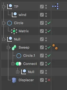 라인의 모션은 단순 디포머 연출보다는 포스필드의 영향에 의한 것으로 보인다.