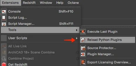 CINEMA4D 를 재실행하거나 Reload Python Plugnis 하고 iphone 과 연동이 되는지 확인해 보자.