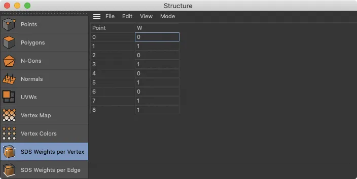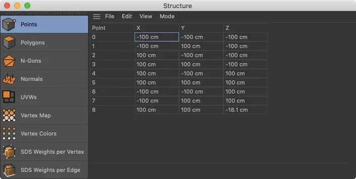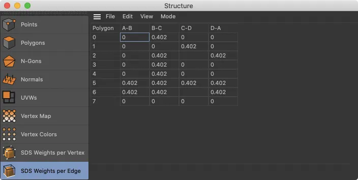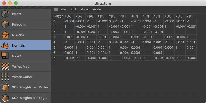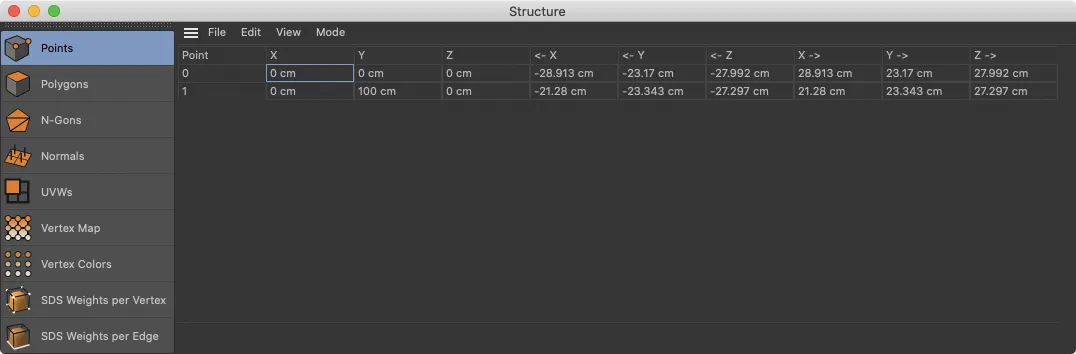 명확하다고한 이유는 다른 모드에서도 결국은 포인트 수가 같이 늘어나 있었다. 그리고 이 정보들을 애니메이션이나 XPresso 로 접근해야 할 때 포인트 정보가 쉽고 편하게 이용할 수 있는 정보이기 때문이다.