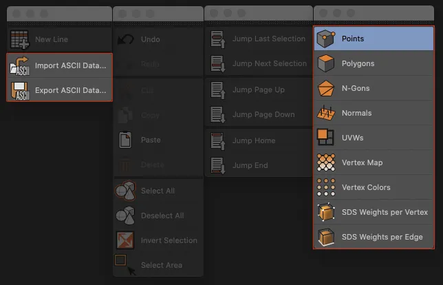 이제부터가 진짜 정리하려는 내용으로 임포트는 Points 모드에서 할때 가장 안정적이었다. 모든 모드에서 저장한 문서를 불러왔을때 포인트 모드가 가장 명확했다.