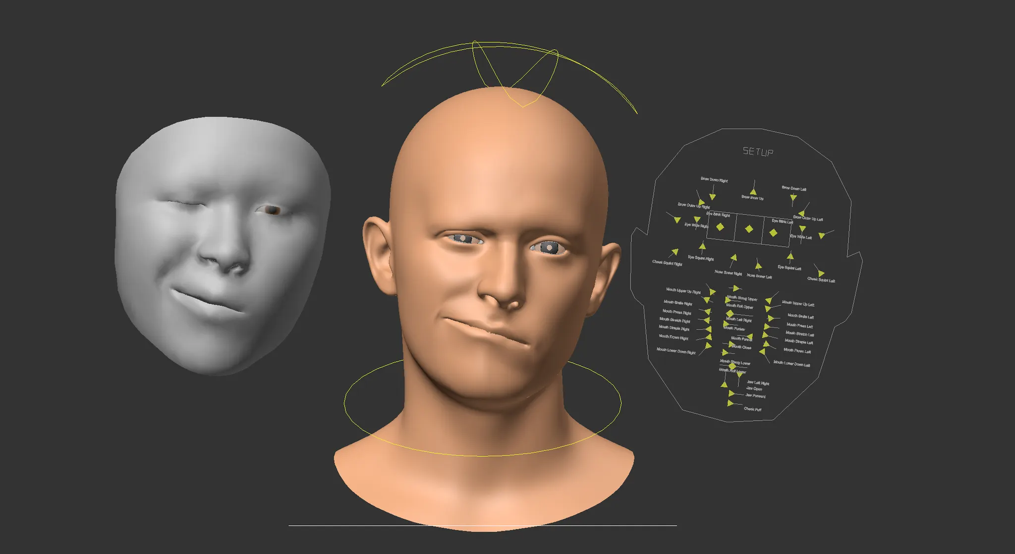 Moves by Maxon 의 페이셜 데이터를 컨트롤러에 연결할 수 있는 페이셜 컨트롤러 프리셋입니다.