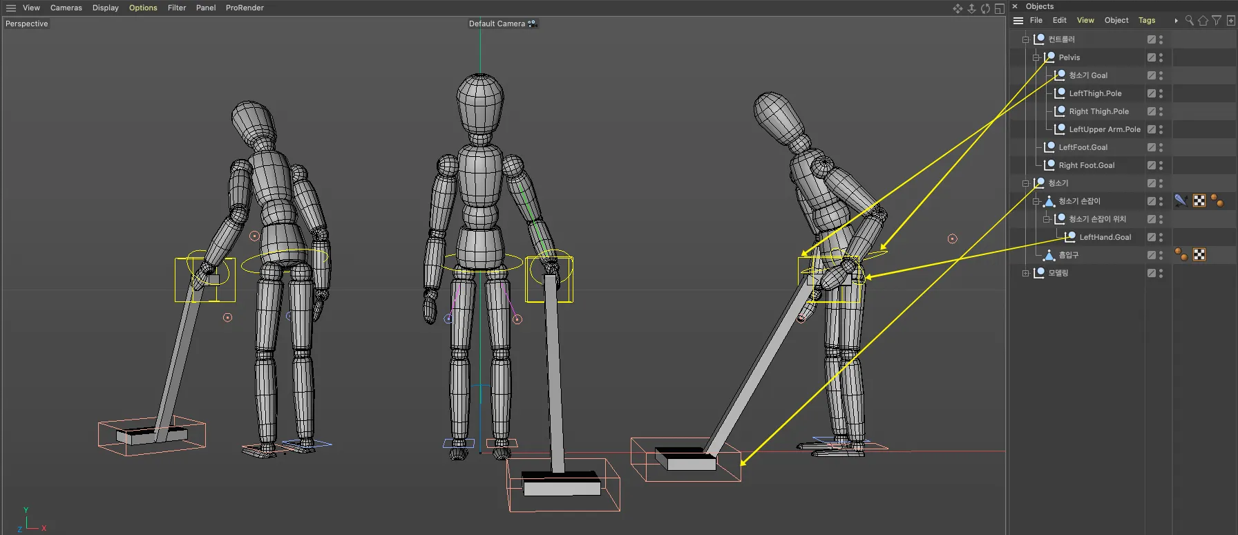 '청소기 손잡이' 에서 '청소기 손잡이 위치' 까지 Create IK Chain 한다.